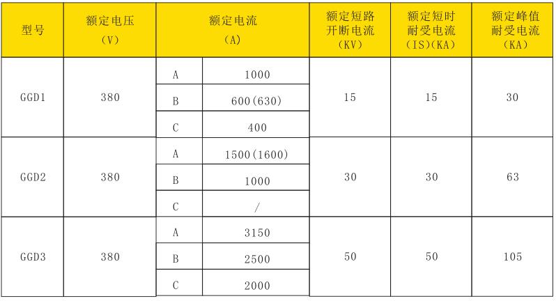概述 GGD型交流低压配电柜适用于发电厂、变电站、厂矿企业等电力用户的交流50HZ、额定工作电压380V、额定工作电流至3150A的配电系统,做为动力、照明及配电设备的电能转换、分配与控制之用。GGD型交流低压配电柜是根据能源部、广大电力用户及设计部门的要求,本着安全、经济、合理、可靠的原则设计的新型低压配电柜,产品具有分断能力高、动热稳定性好、电气方案灵活、组合方便;系列性、实用性强;结构新颖等特点,可作为低压配套开关设备的更新换代产品使用。GGD型交流低压配电柜符合GB7251.12-2013/IEC 61439-2:2011《低压成套开头设备和控制设备》等标准。